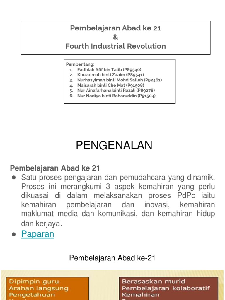 Kemahiran pengajaran dan pembelajaran (pdp) abad 21 merujuk kepada beberapa kompetensi teras, iaitu kolaboratif, celik digital, kemahiran berfikir dan penyelesaian masalah. Pembelajaran abad 21 merupakan isu pendidikan paling trending di malaysia untuk tahun 2015 hingga tahun 2016 ini. Abad 21 learning note notes. Assignment abad 21 full doc. Susunatur bagi kelas abad ke 21 adalah mesti mempunyai beberapa ciri yang penting, iaitu membolehkan pelajar terlibat secara aktif dengan pdp yang berlangsung, membina ruang autonomi pembelajaran dan menselarikan ruang pembelajaran fizikal dengan ruang pembelajaran mental.
